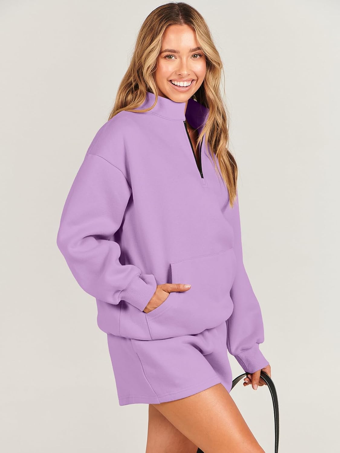 Features — Oversized/Half Zip /Collared/Long sleeve/Side pockets