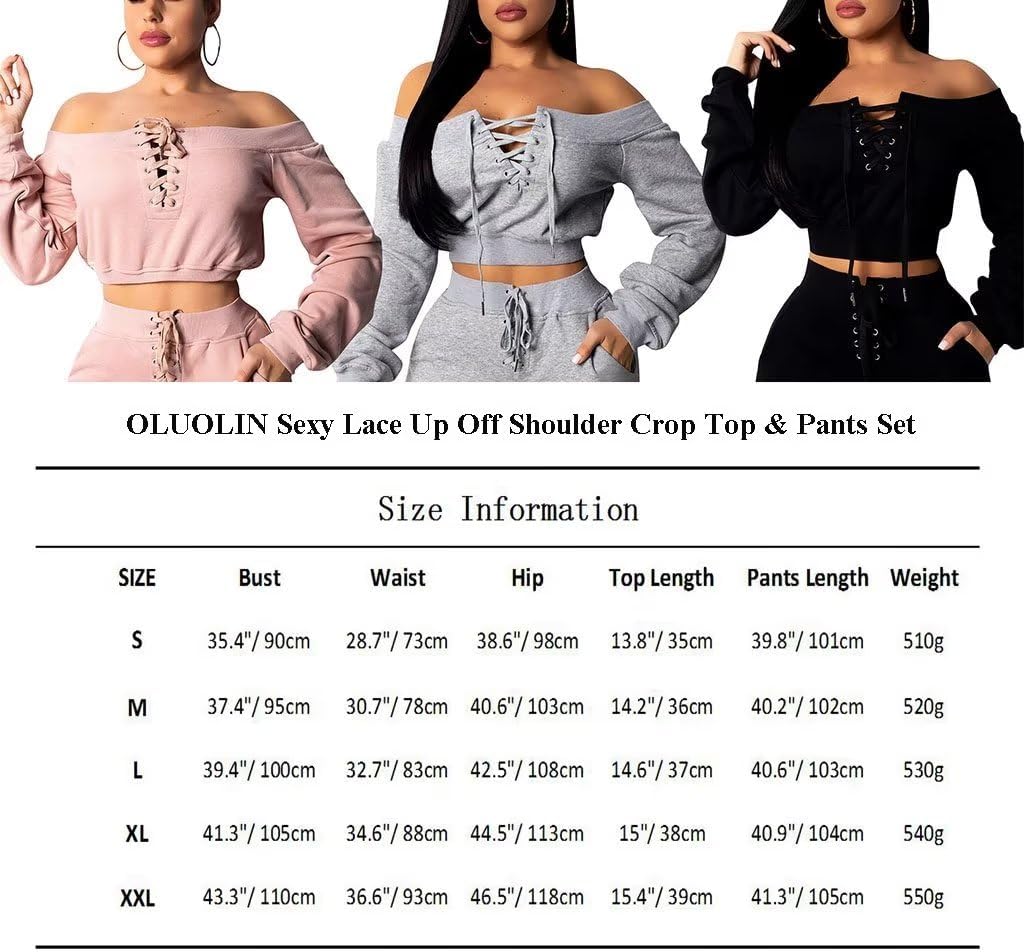 OLUOLIN Women Sexy Long Sleeve Two Pieces Outfits Tracksuit Lace Up Off Shoulder Casual Sweatsuit