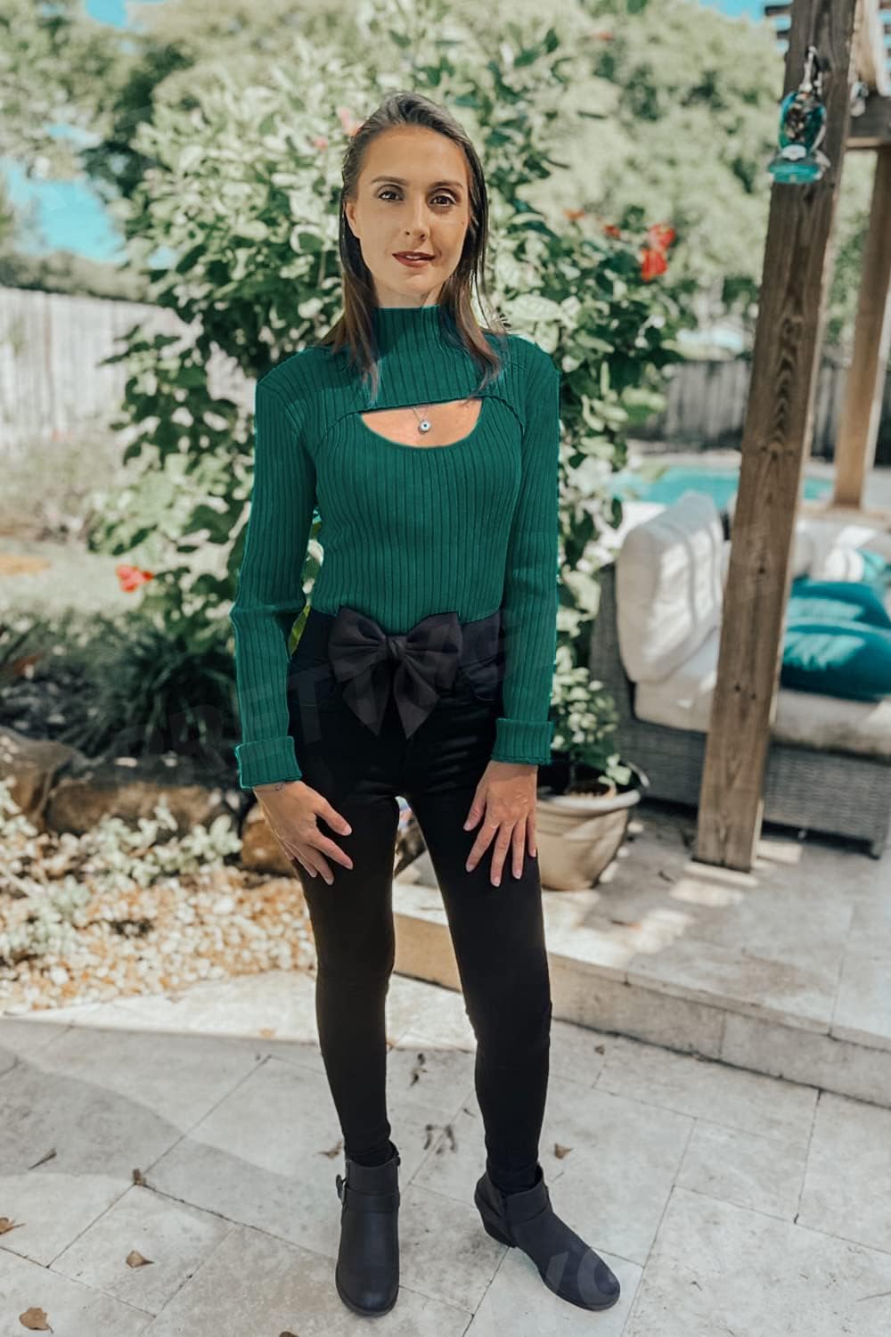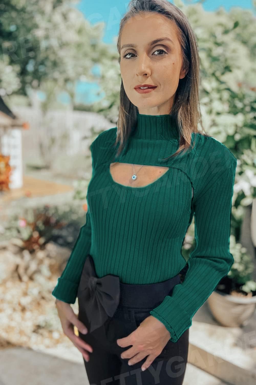 Fashion Style: Long Sleeve/Cut Out/Mock Neck/Solid Color/Rib Knit/Slim Fit